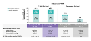 Another agent investigated in patients with brain metastases has been T-DXd. In the phase III DESTINY-Breast-03 trial, this ADC demonstrated antitumor activity in patients with HER2-positive unresectable or metastatic breast cancer who have received at least one prior anti-HER2-based regimen, including those with brain metastases.36 A pooled analysis of the DESTINY-Breast01, -02 and -03 trials further confirmed the efficacy of T-DXd in this clinical setting, consistently demonstrating superior intracranial response rates with T-DXd versus comparator therapies.37 Among patients receiving T-DXd, the intracranial ORR was 45.2% in those with treated/stable brain metastases and 45.5% among those with untreated/active brain metastases; these percentages were 27.6% and 12% among patients receiving comparator therapy (Figure 5). T-DXd showed a trend towards prolonged CNS-PFS over the comparator, with a greater advantage in patients with untreated/active brain metastases (18.5 months vs 4 months) than in patients with treated/stable brain metastases (12.3 months vs 8.7 months).